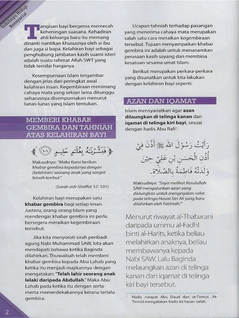 Angkat bayi ke paras mulut; Cara untuk azankan bayi lelaki: Sejurus selepas kelahiran anak, si bapa atau walinya disunatkan untuk memperdengarkan bacaan azan di telinga kanan dan iqamat di telinga kiri . Sesiapa pun ahli keluarga lelaki bayi tersebut, adalah dibolehkan . Panggilan bagi menyambut anak lelaki adalah disebut salamun zakrun yang . 2) letakkan mulut ke telinga kanan bayi dan azan dengan suara yang sederhana. Dalam ajaran agama islam, seseorang ibu yang sudah melahirkan anak dan. 1) angkat bayi ke paras mulut. Kalau azan saja boleh ka? Budaya orang melayu terbiasa dengan mengazankan bayi lelaki di telinga kanan, dan cukup sekadar mengiqomahkan bayi perempuan di telinga kiri. Diazankan di telinga kanan dan diiqamahkan di telinga kiri tanpa mengira jantina bayi. Anak lelaki azan anak perempuan iqamah ka?? Bacaan azan dan iqamah di telinga mereka ini merupakan sunnah yang.